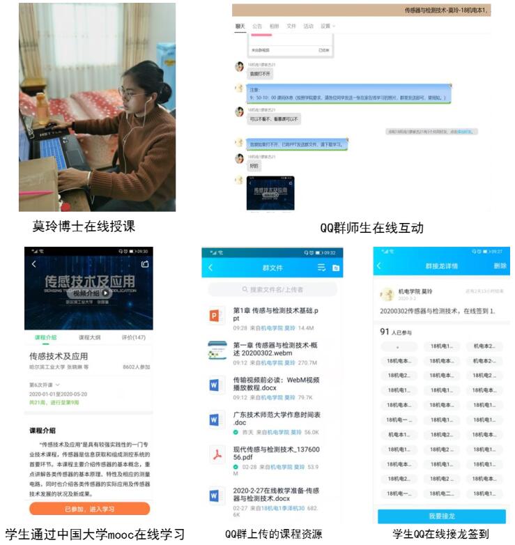莫玲老师的《传感器与检测技术》选用的是爱课程(中国大学MOOC)、QQ群和超星学习通等平台进行在线教学。课程选用了哈尔滨工业大学张晓琳老师的《传感技术及应用》慕课视频,通过QQ群方式实时开展线上教学过程开展和在线讨论、辅导答疑、作业布置、作业截图抽查等。与此同时,莫玲老师提前录制了PPT音频文件,供员工根据需要选取学习,课后发放对应章节课件PPT和布置作业题,驱动员工带着问题主动学习和巩固。课堂气氛活跃,员工发挥自觉性,积极主动开展在线课程学习,积极发言和回答问题。