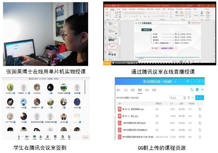 张国英老师的《单片机原理及应用》所使用的教学平台是腾讯QQ群以及腾讯会议。课前,张老师已经将教学大纲(含教学要求、考核方式)、教学课件(PPT)、电子教材、作业、参考资料等上传到群文件里。使得同学能够根据课前布置的预习任务和作业题,带着问题主动自学。为避免线上授课高峰期因网络异常、平台拥挤等原因影响教学,采取在学习通上重新录播课程,方便员工回看。课上,张老师通过腾讯网络视频会议、QQ等方式开展线上教学和在线讨论、辅导答疑、作业布置、作业检查、考核评价。上课期间课堂活跃,员工积极发言。