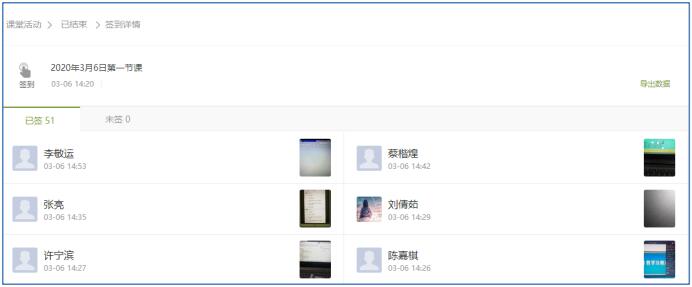 通过QQ群签到、超星学习通签到、腾讯会议在线直播人数等数据可以看出,除个别同学存在网络信号原因签到迟到或掉线情况之外,员工出勤率达到100%,无缺课现象。