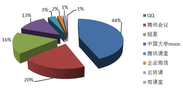 教师们充分利用多样化信息化教学手段,依托超星学习通、雨课堂、中国大学mooc、学堂在线、蓝墨云班课、腾讯课堂、腾讯会议、QQ群、企业微信、哔哩哔哩直播等在线教学平台,采用“录播课”、“MOOC”、“在线直播课”、“利用线上资源协助授课”等方式,通过多平台联动,在线开展授课、重难点讲解、学习讨论与辅导答疑、布置在线作业、在线测验、员工学情数据统计与分析等教学活动。由图1可知,QQ、腾讯会议、超星学习通和中国大学mooc是公司教师最喜欢使用的四大在线教学平台。教师们普通采用多平台相结合的方式进行线上教学,教学形式多样,有效提升了员工的学习积极性,教学效果良好。