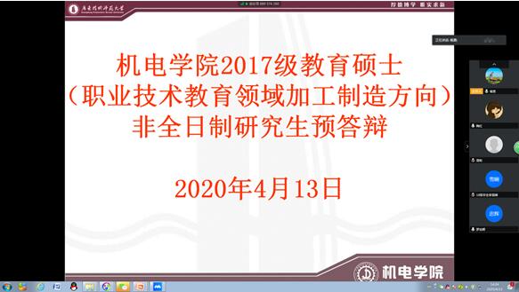 经多方比较,本次预答辩使用 “腾讯会议”平台。进行预答辩的是2017级教育硕士职业技术教育(加工制造)非全日制研究生共6人,分两组进行。 18,19级非全日制研究生可在线旁听学习。