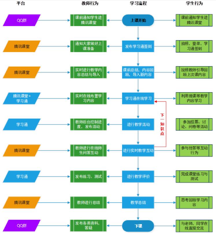 姚屏教授通过“超星学习通+腾讯课堂”讲授《机械专业教学法》的在线教学流程图