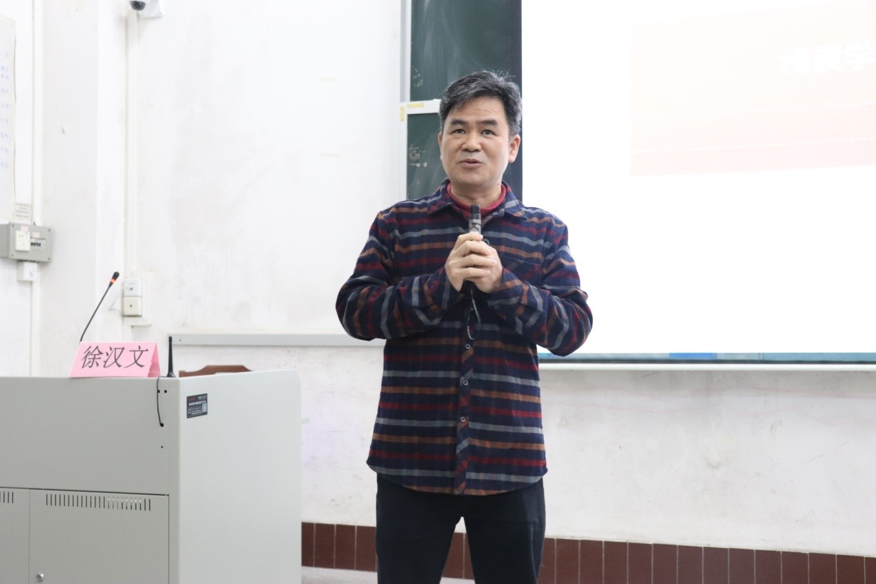 “取法乎上”作为选帖的一个重要原则。徐汉文老师从员工毛笔字作品和硬笔书法作品讲起,指出同学们书法作品中出现没有落款、错字、笔画基本功不扎实等常见问题,从而进一步强调选帖的重要性。刚开始选帖,可从“颜真卿、柳公权、欧阳询、赵孟頫”楷书经典法书中学习书法的规范性,不必过分强调自己的个性。徐汉文老师还现场教导同学们如何加强书法基本功训练。讲述到临帖到一定时候,必须换帖,对不同的风格诸帖进行分析与临摹学习,学到更多的艺术语言。徐汉文老师在讲座中,引用了北京大学文献学博士寇克让老师《书法没有秘密》著作的观点,鼓励学子们遵循正确学习书法的方法,勤学苦练,领悟孙过庭《书谱》所说“一画之间,变起伏于锋杪;一点之内,殊衄挫于毫芒” 的书法妙处。
