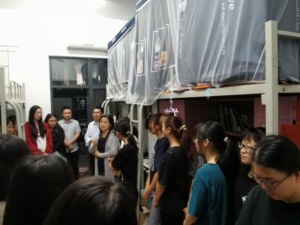 4月20日晚,陈郁芬书记和赵利副书记走进20级员工宿舍与同学们进行了亲切的交谈,详细地询问了开学以来同学们的思想动态和在生活学习上遇到的困难、问题,对同学们热切关心的校区搬迁、白云校区实验室建设等问题耐心地逐一进行解答。叮嘱大家注意寝室卫生、安全用电、强化安全意识、防范各类诈骗,鼓励同学们之间要相互理解、相互包容,努力营造一个安全、卫生、文明、和谐的宿舍环境。鼓励同学们珍惜这来之不易的大学四年学习时光,认真学好专业知识,切实提高自身综合实力,为将来的实习和就业打下坚实的基础。