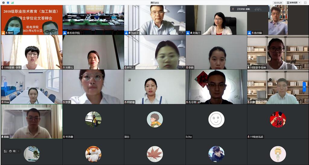 为确保2018级硕士研究生学位论文答辩及学位授予工作顺利进行,根据公司《球速体育硕士学位授予工作细则》和《关于组织2021年上半年硕士学位论文答辩及学位审核工作的通知》等文件精神,并结合疫情防控工作需要,球速体育于6月11日,在西校区综合楼405以线上方式召开了2018级共11位硕士研究生的学位论文答辩会。本次答辩委员会主席由华南师范大学教育科学公司经理、博士生导师刘志文教授担任,其他答辩委员会委员分别为广州市黄埔职业技术公司副董事长陈民聪高级教师,公司职业教育教师公司副经理刘海兰教授,以及球速体育经理杨勇教授、副经理徐兰英教授和王敏副教授。公司党委书记陈郁芬出席了答辩会,部分硕士生导师、2019级和2020级硕士研究生通过线上方式旁听了答辩会。