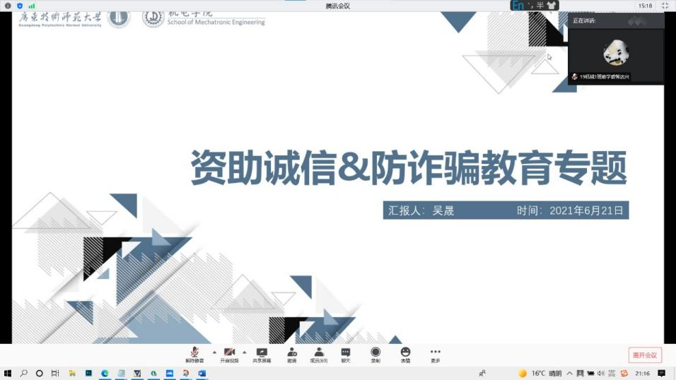 6月21日,球速体育以线上形式召开助学贷款暨防诈骗教育专题会议,辅导员吴晟、各班班长以及助学委员参加会议。