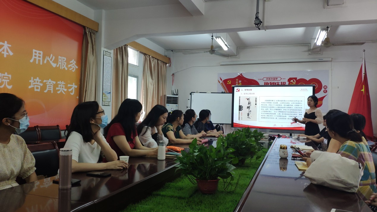 阅读活动由分工会委员简月主持,她向大家介绍了举办活动的初衷之后,由分工会委员蔡叶领读了《中国共产党简史》第一章“中国共产党的创建和投身大革命的洪流”部分内容,大家在朗朗的读书声中领悟中国共产党 “开天辟地、敢为人先的首创精神,坚定理想、百折不挠的奋斗精神,立党为公、忠诚为民的奉献精神”,进一步感悟红船精神所带来的震撼。分工会委员简月分享了《明朝那些事儿》读书体会,她表示该书的语言风趣幽默,令人读来回味无穷,给自己很大的启迪:作为一名工科老师,应该思考在枯燥的工科理论知识讲授中如何采用让员工能够接受和喜爱的语言方式。简月向大家推荐了“玫瑰书香”全省女职工主题阅读活动推荐的书籍,也推荐了部分党史学习教育必读书目。
