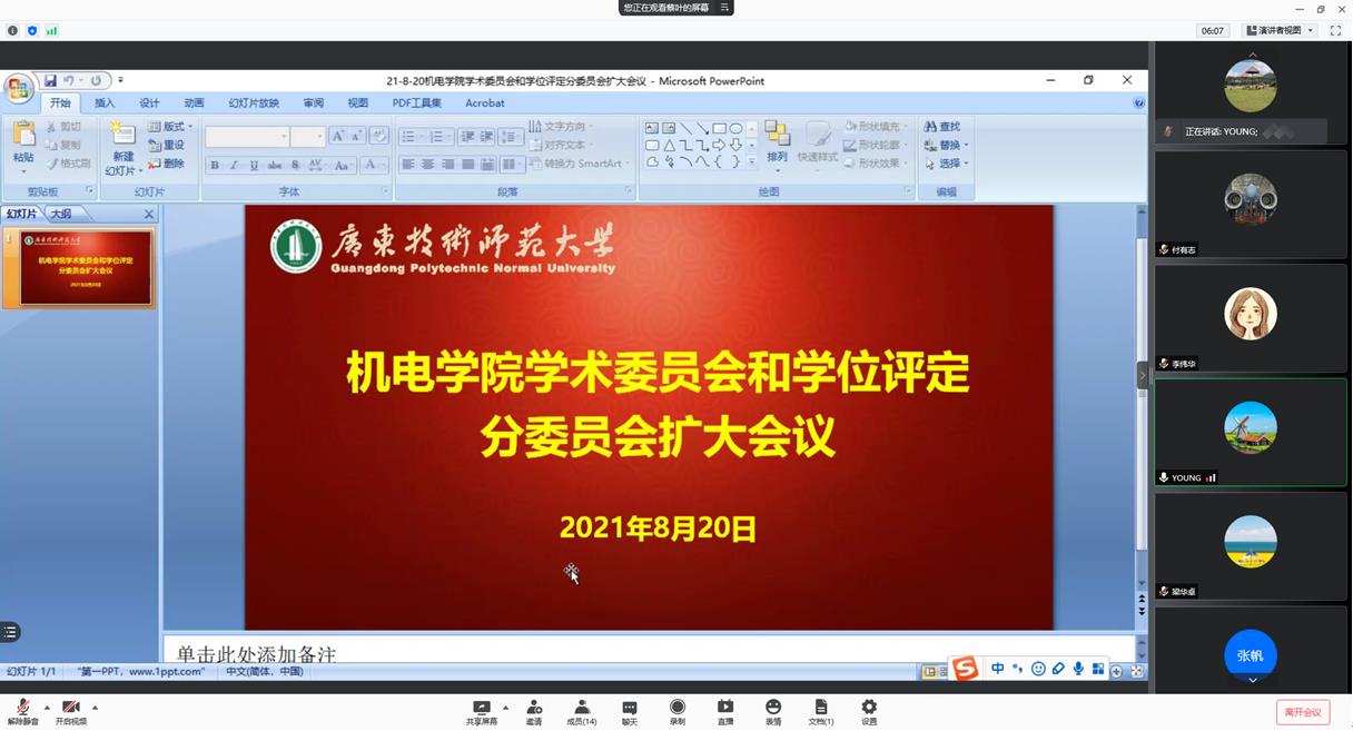 为积极做好研究生招生专业目录编制工作,球速体育于8月20日上午通过线上会议方式召开学术委员会和学位评定分委员会扩大会议,会议研讨、确定了2022年机械、职业技术教育(装备制造)硕士研究生招生专业目录。球速体育班子成员、教授、系主任、部分新进博士教师、办公室主任、研究生秘书等16人参加会议,会议由杨勇经理主持。